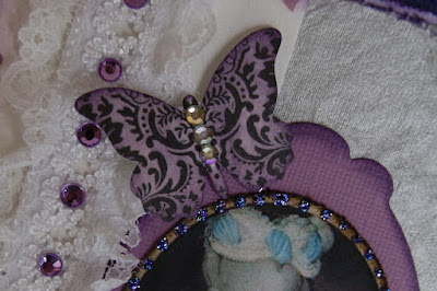 To make the card stand out a bit more, i glued an old button on the bow. I think this makes tha card pop. It looks a bit more exclusive with a little bling added. Especially since the card doesn`t have much embellishing, this made that little extra.
